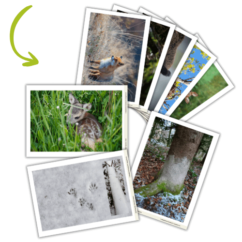 Bildkarten zu allen Tieren aus den Geschichten: inkl. Spuren, Losung, Fellfarben uvm.