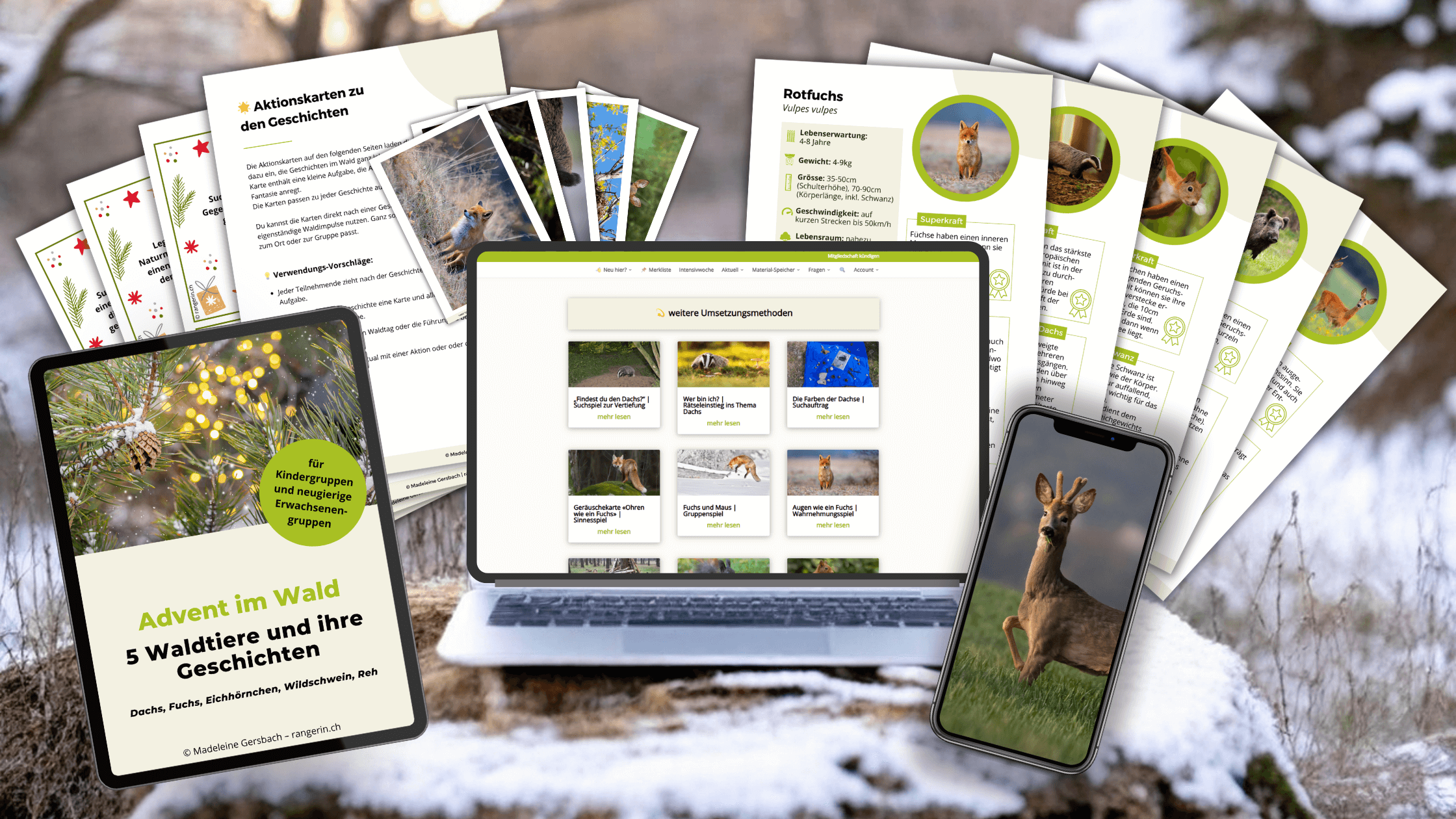 Mit dem Adventspaket erarbeitest du in 30 Minuten deinen ersten Waldtag im Advent zu einem von fünf verschiedenen Waldtieren.