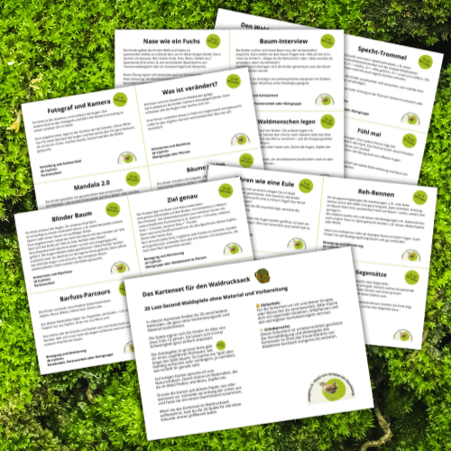 Wald- und Naturpädagogik-Shop Themenpaket Frühling 🌷 CHF/€ 27,- zum Frühlings-Set Themenpaket Sommer ☀️ CHF/€ 27,- zum Sommer-Set Themenpaket Herbst 🍁 CHF/€ 27,- Aktion bis 10.10.25:Dazubuchbares Materialpaket Bäume zum Herbst-Set Themenpaket Winter ❄️ CHF/€ 27,- zum Winter-Set Waldrucksack-Karten 🎒20 Waldspiele ohne Vorbereitung CHF/€ 7,- zu den Karten Themen-Set Marienkäfer und Feuerwanze 🐞 CHF/€ 37,- zum Set