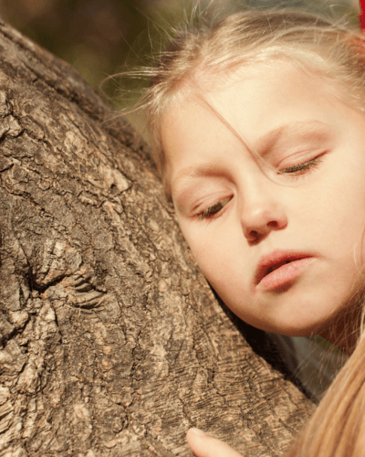 - Die Kinder legen ihr Ohr vorsichtig an den Stamm und lauschen
