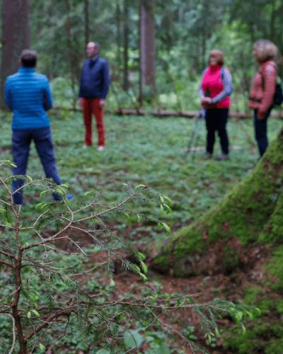 - Die andere Person führt die „blinde“ Person vorsichtig zu einem Baum mit markanten Merkmalen